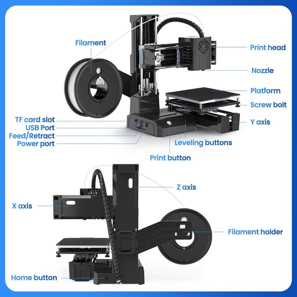 Una impresora 3D típica está compuesta de muchas partes diferentes.