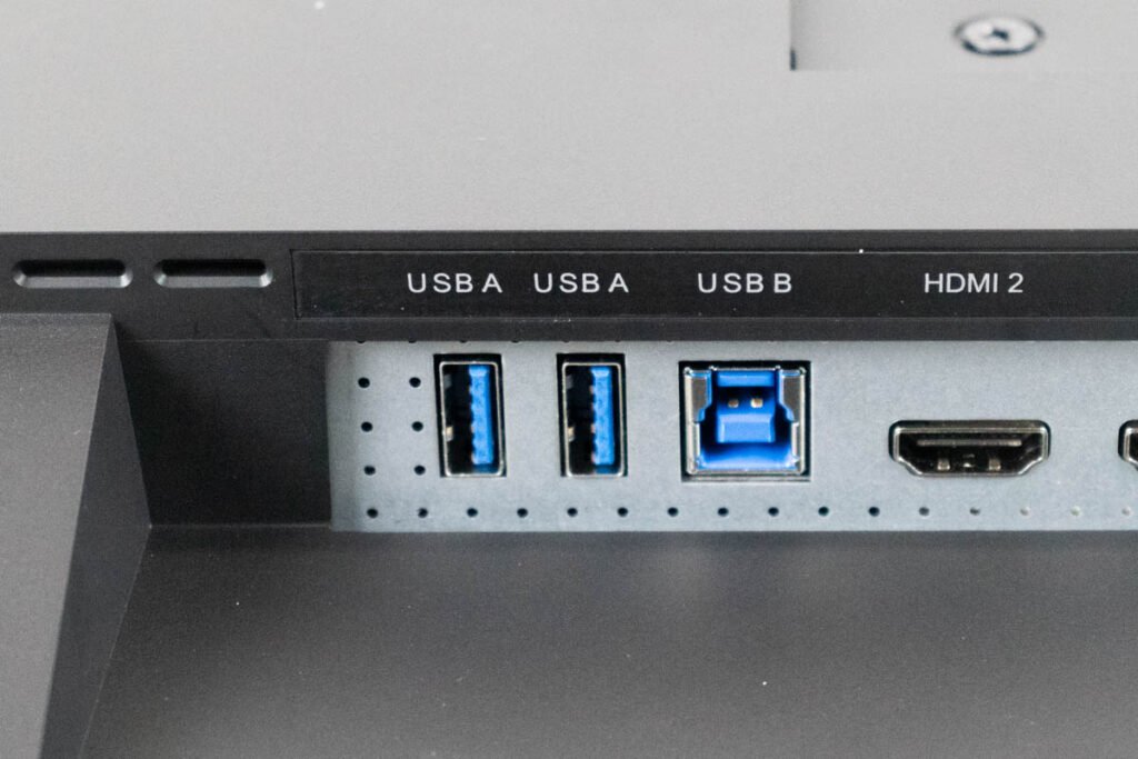 Los puertos USB suelen seguir un esquema de colores. Los puertos USB 1.0 y 1.1 son blancos, los puertos 2.0 suelen ser negros, los puertos 3.0 son azul oscuro, los puertos 3.1/3.2 son verde azulado y los puertos USB 3.2 2×2 son rojos.