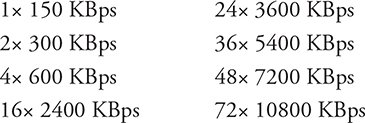 Las primeras unidades de CD-ROM procesaban datos a aproximadamente 150 KBps, copiando la velocidad del formato de audio CD original. Desde el día en que las primeras unidades de CD-ROM para PC llegaron al mercado, ha existido un deseo de acelerarlas para aumentar su rendimiento de datos. Cada aumento de velocidad se mide en múltiplos de las unidades originales de 150 KBps y se le asigna una X para mostrar la velocidad relativa a las primeras unidades (1X). A continuación se incluye una lista de velocidades de CD-ROM comunes, incluidas la mayoría de las velocidades tempranas que ya no se producen: