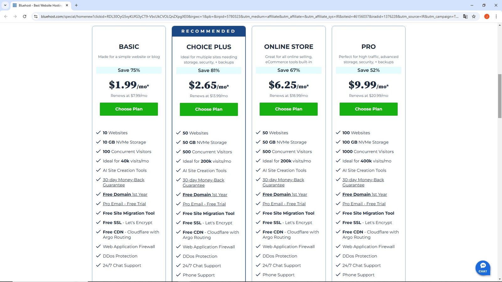 Planes de Bluehost