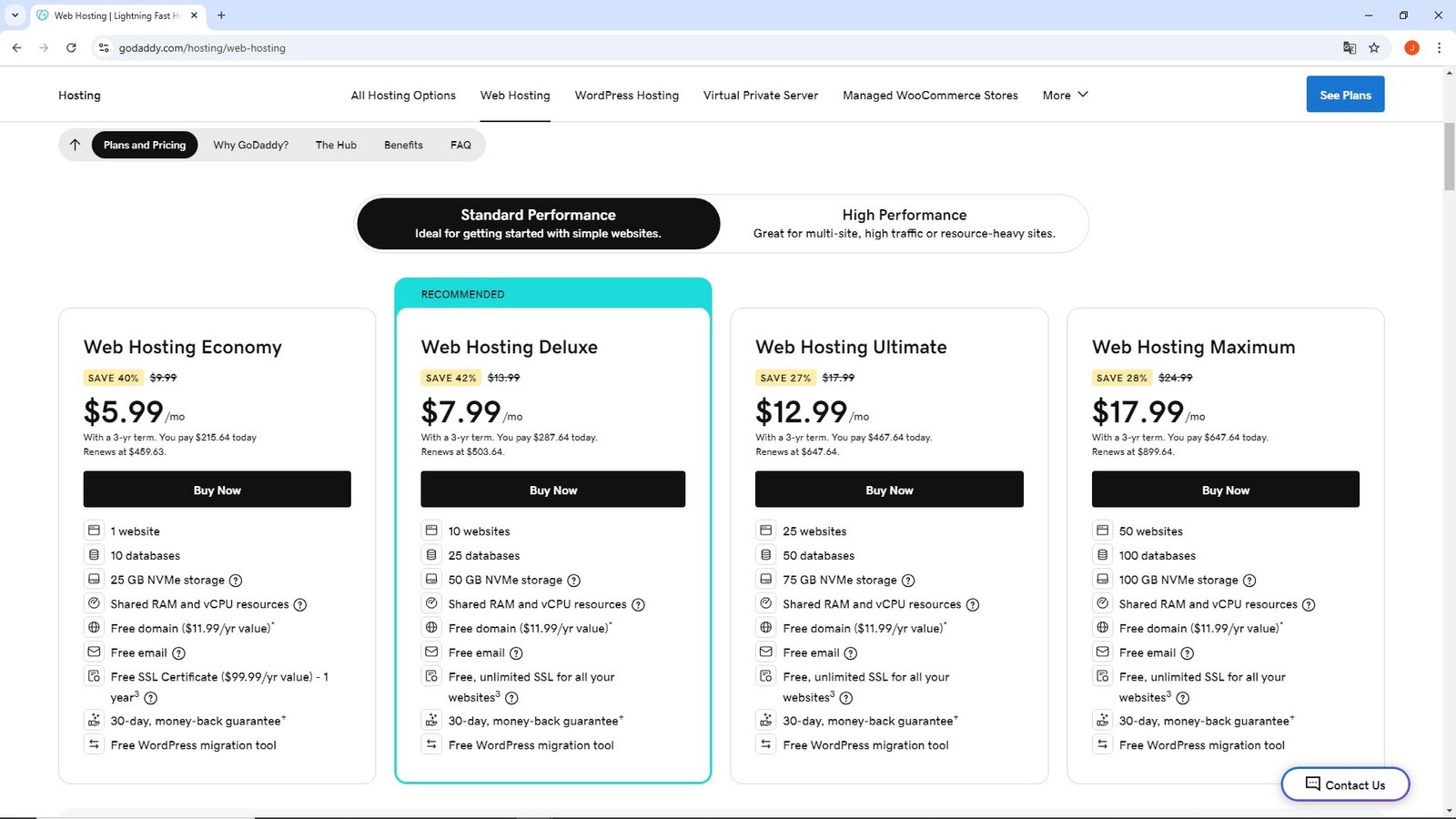 Planes de GoDaddy