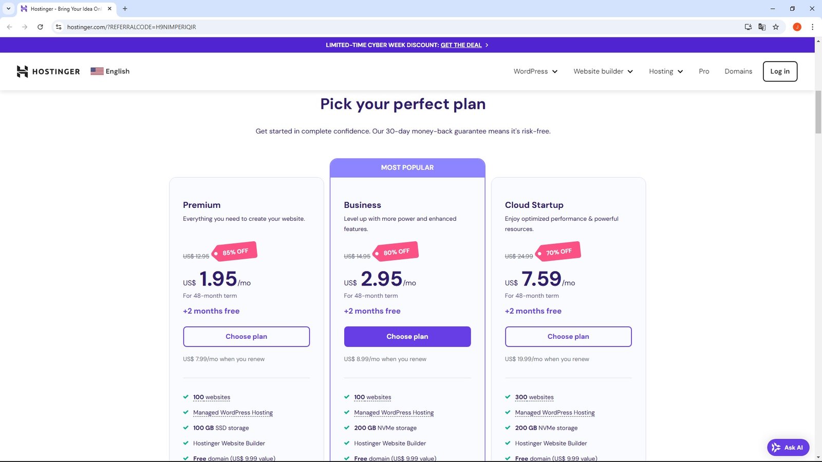 Planes de Hostinger